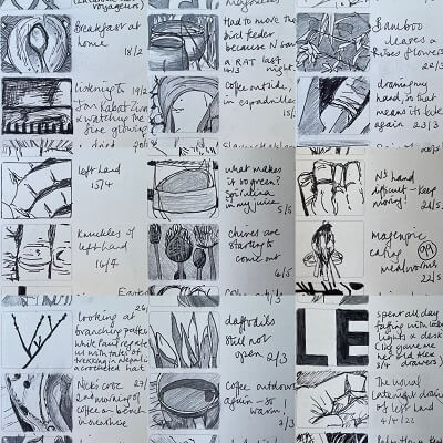 If I’m away from my studio or desk and I’m in the middle of a project, I’ll make detailed notes and plans, almost like a set of instructions for when I get back to it – then I can follow it step-by-step. This is a great way to side-step the overthinking and get straight back into it.