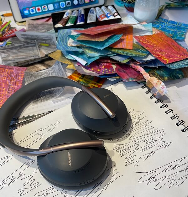 There wasn’t time in our chat to talk through all the things we can do, so I thought I’d add some more detail here. Whether it’s a stitching day or a painting day, for me it’s all about shutting up that negative talk and overthinking, so I can relax into my creativity.