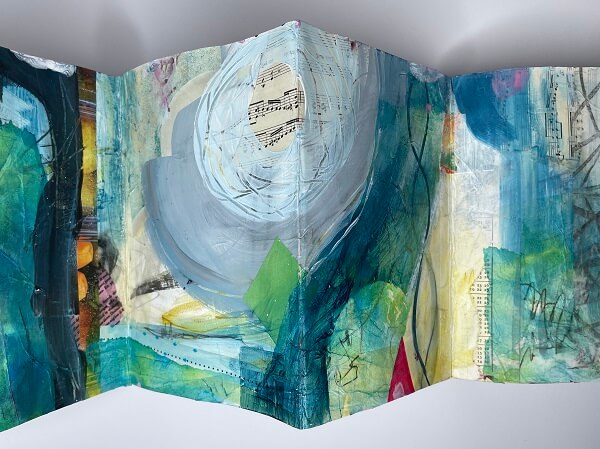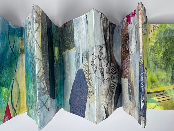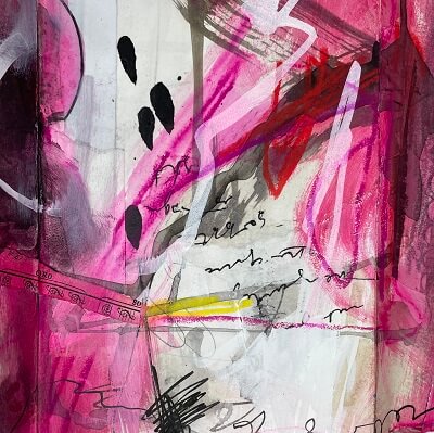 - Karen Stamper’s “free up your sketchbook” course was fantastic for this, as you can follow along, step-by-step, using different processes to add marks and layers – and each idea adds another layer of complexity and interest.