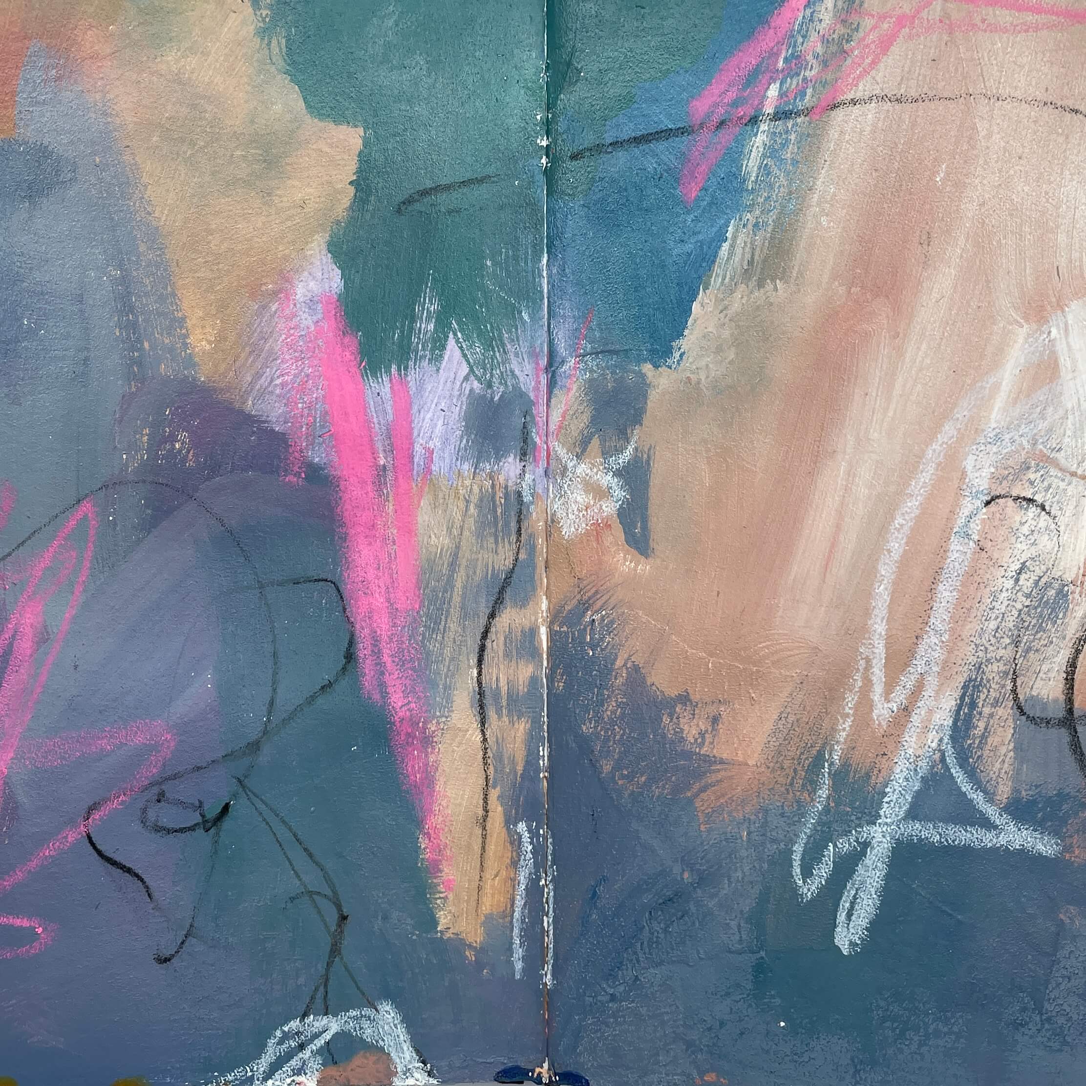 I’ll shuffle through my Spotify liked songs, find something that feels right – usually something upbeat that makes me feel happy, something that gets my feet moving, and makes me feel energetic. I usually paint standing up, so feeling energised helps me move more easily and be more expressive.