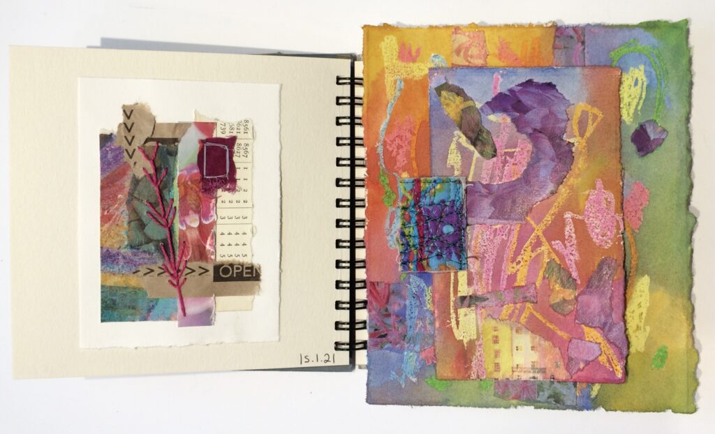 I’ve also made a couple of mini collages for the sketchbook, and painted some collage papers: