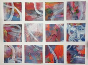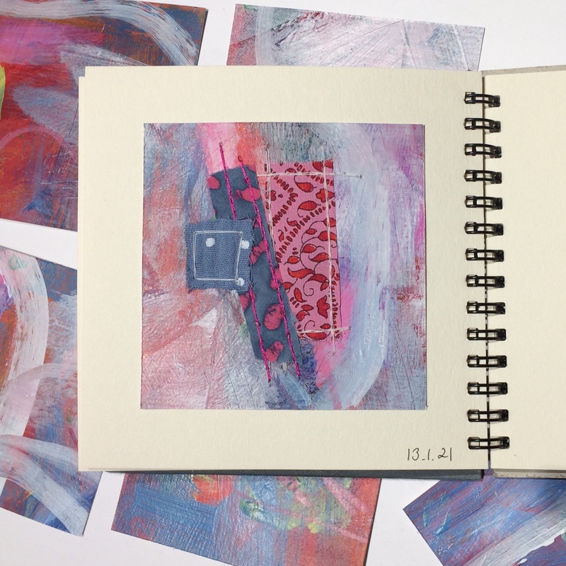 I’ve been trying to revisit the exercises from the Find Your Joy painting course. I haven’t got very far, but did one little piece, then used the leftover paint to add to one of the very first pieces I did last summer.