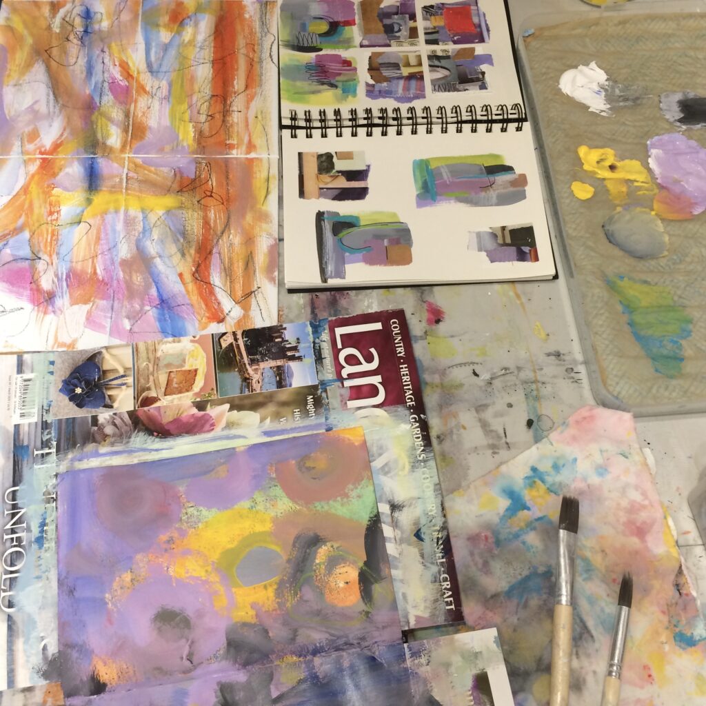 I’m going to try a similar exercise in fabric next, but I want to refresh my scraps and oddments of fabric with some finds from early last year that haven’t been used yet – trouble is, they’re in the cupboard behind the painting table!