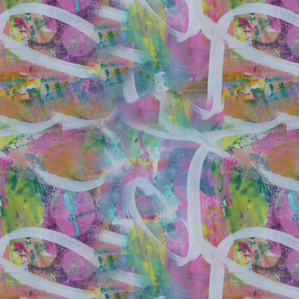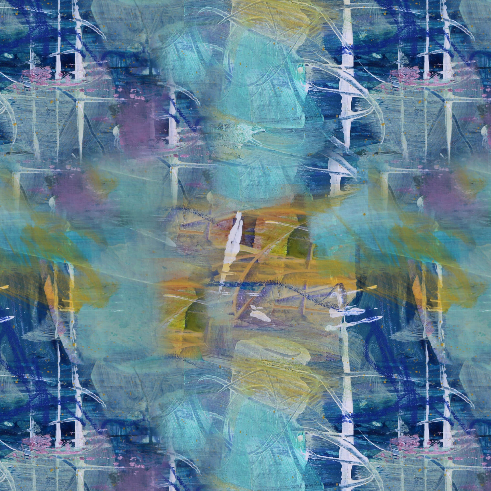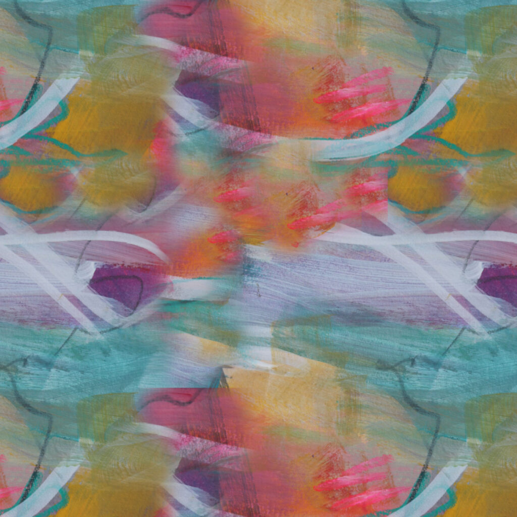 I found some instructions for making a repeat pattern from an abstract painting, so I set to with Photoshop. Even with the instructions, it took a bit of working out (I don’t use it often enough to be that familiar with how it all works!).