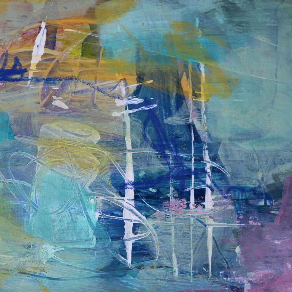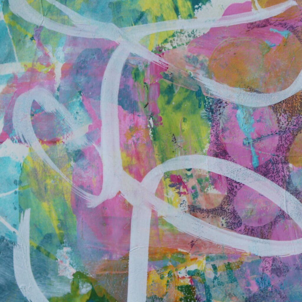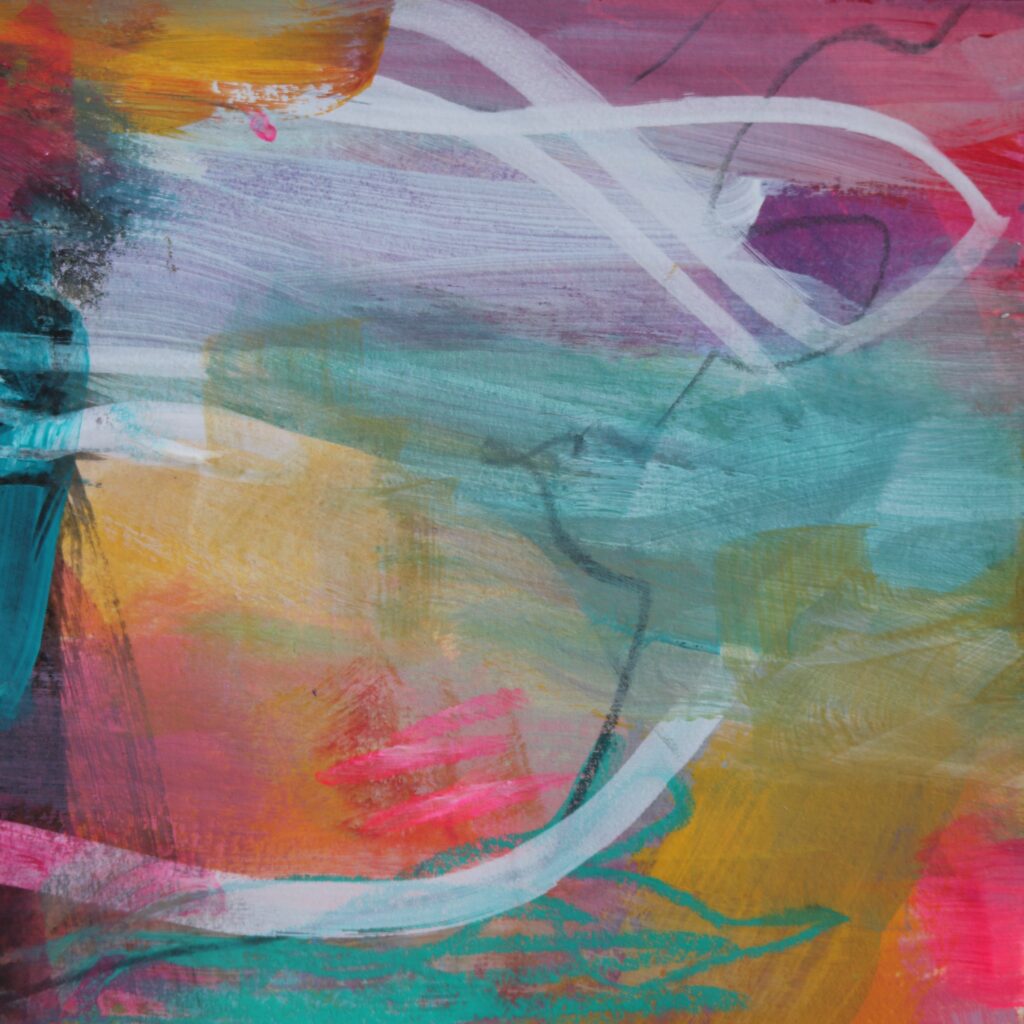 I found some instructions for making a repeat pattern from an abstract painting, so I set to with Photoshop. Even with the instructions, it took a bit of working out (I don’t use it often enough to be that familiar with how it all works!).