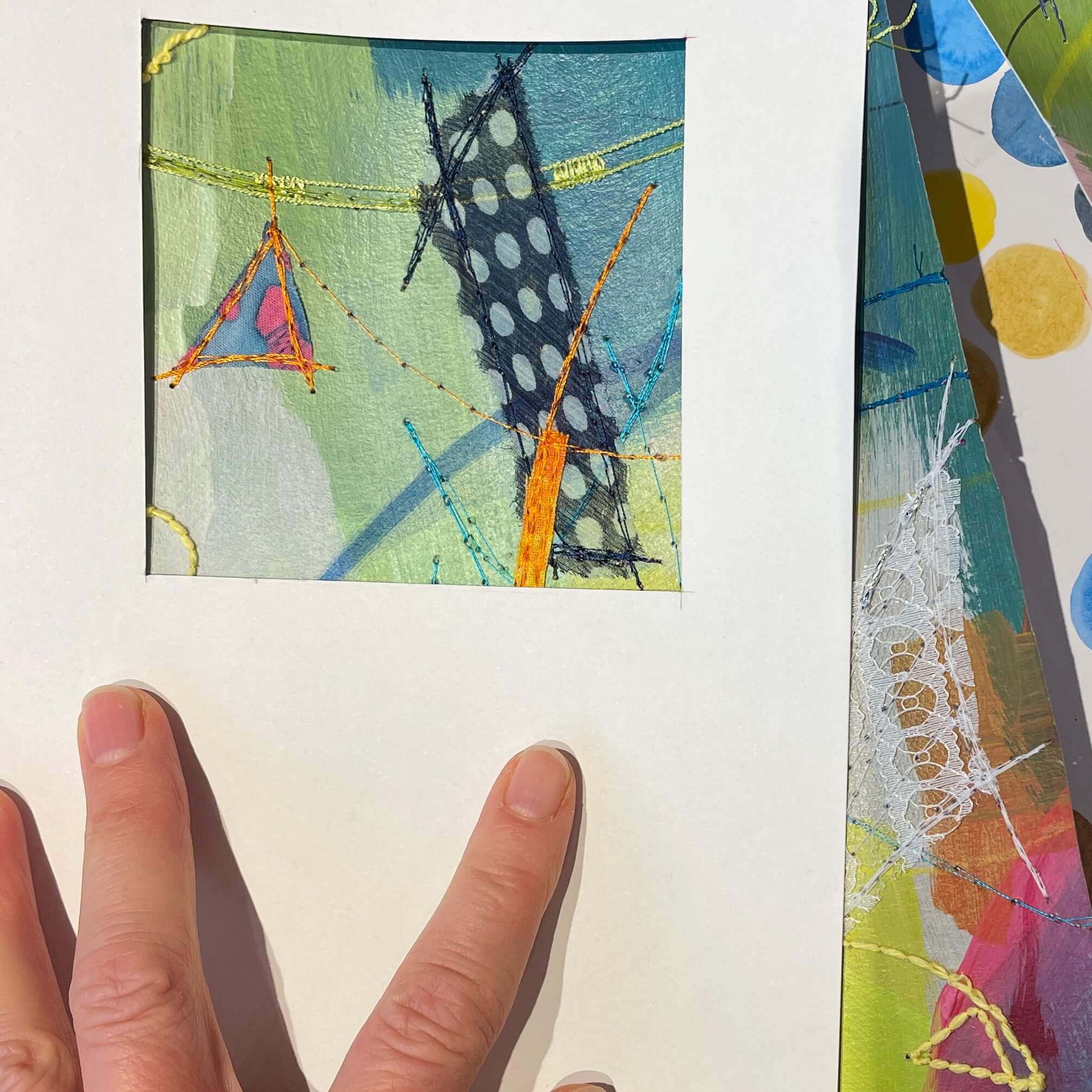 I wanted to take part in the Instagram “one of many” initiative, and decided I’d use up some more of this massive sheet of painted paper that’s been kicking around, cluttering up my studio.