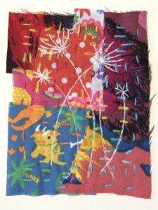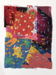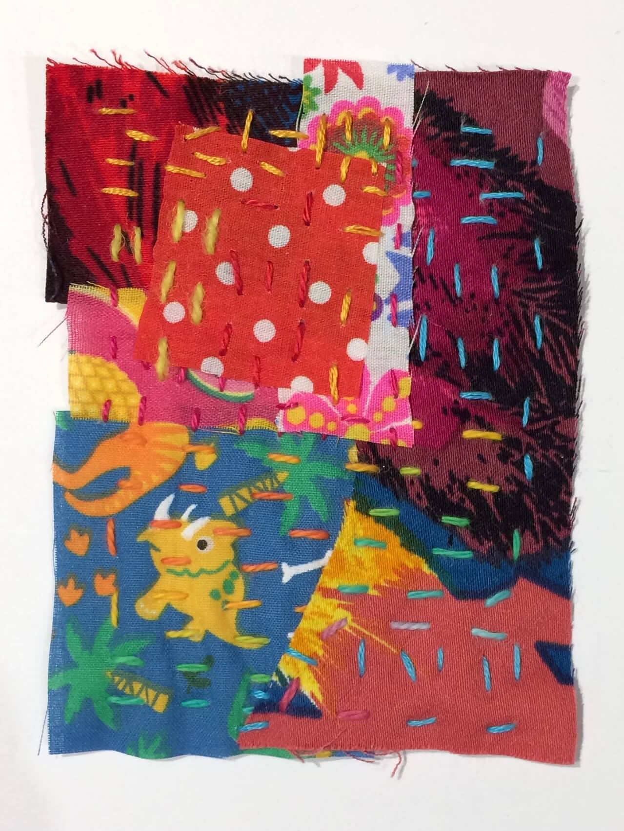 Next week I’m going to be delving back into the Find Your Joy painting course, to redo the exercises after a few months’ break from concentrated painting. Until then, I’ve been trying to build a tiny stitch habit – grabbing anything, and something else, then stitching part A to part B – sketching, or doodling, if you like. Just something to say “I have stitched today”. It’s not necessarily going to be anything, other than trying to cultivate a different approach to my usual deadline-driven erraticism – a step towards becoming more diligent with my practice.